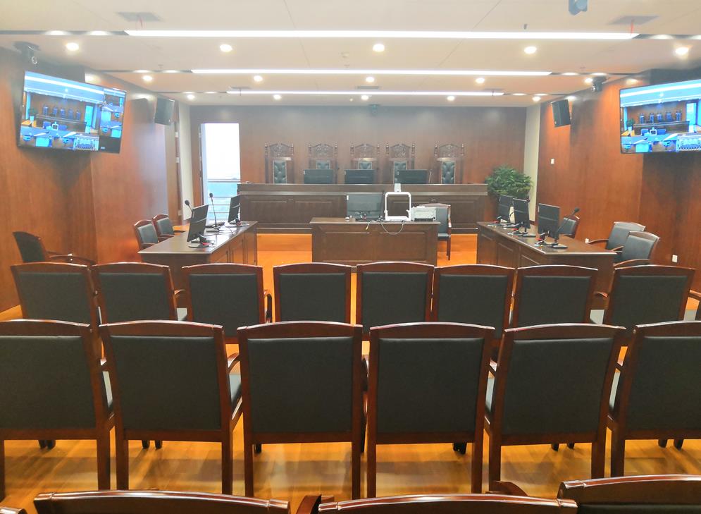 3、审理庭内的旁听人员通过庭内大屏幕显示设备;审理庭外的公众通过互联网系统,对公开审理的各类案件实现透明公开的了解和监督。