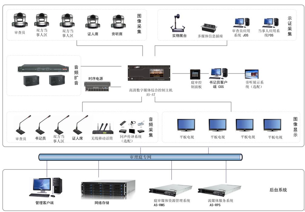4、多媒体审理系统是一个案件信息中最核心的数据采集部分,全部审理过程中的各类信息,都应在一个完善的多媒体审理系统中无遗漏的采集并记录下来。