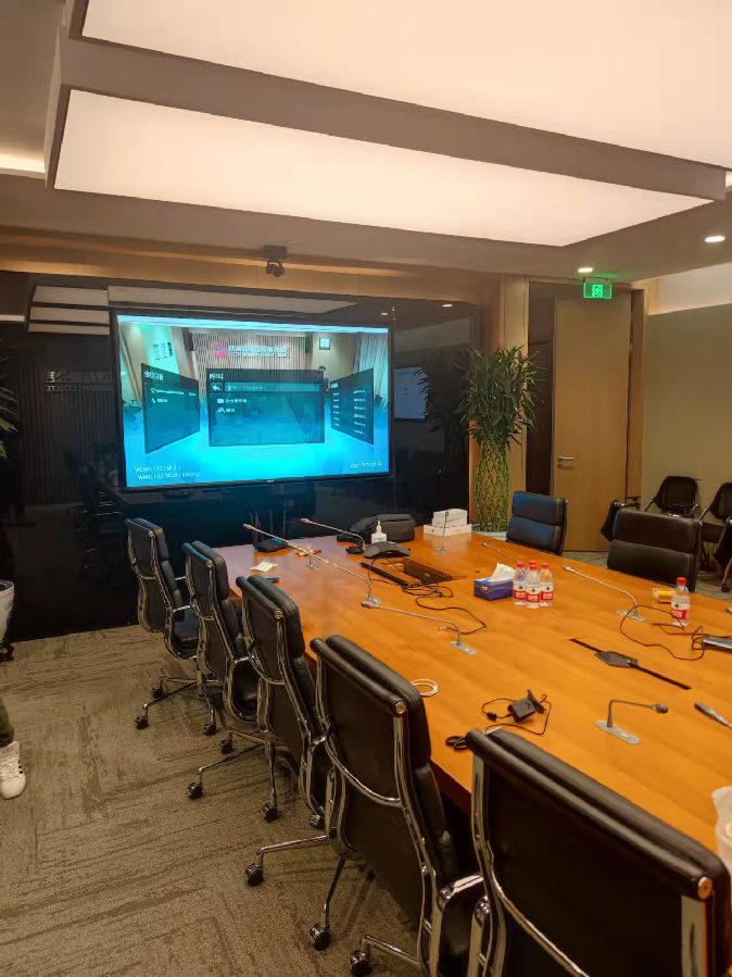 (2)项目包含:本项目共建设1个会议室,使用1台ng28(南宫)科技(AVSYS)多媒体综合管理一体机,实现统一控制管理,音视频调度,会议室互动等应用。