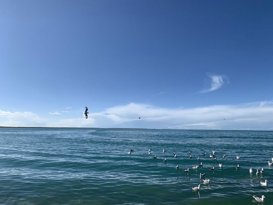 感受了塔尔寺的神秘后,我们又出发前往中国最大的内陆咸水湖-青海湖,青海湖位于青藏高原东北处,祁连山的东南部,海拔3260米,秋天的风把遍地的青稞吹成金黄色,与蓝天碧水形成鲜明的对比,但又极为融洽。大家沉迷在这静谧辽阔的景色中,久久回味。